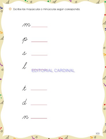 d d ⵙ Escribe las mayúsculas o minúsculas según corresponda. d m p s d l d EDITORIAL CARDINAL EDITORIAL CARDINAL t d d n d 103 d d