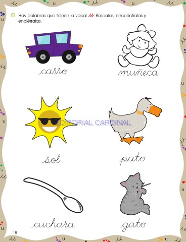 u u ⵙ Hay palabras que tienen la vocal u. Búscalas, encuéntralas y u enciérralas. u u EDITORIAL CARDINAL EDITORIAL CARDINAL u u 18 u u