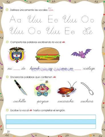 ⵙ Escribe la vocal u hasta completar el renglón.