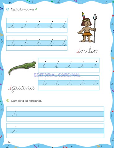 i i ⵙ Repisa las vocales i. i i i EDITORIAL CARDINAL EDITORIAL CARDINAL ⵙ Completa los renglones. i i 24 i i