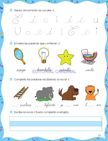 ⵙ Escribe la vocal e hasta completar el renglón.