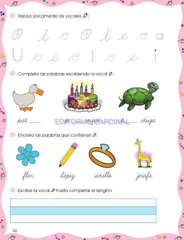 ⵙ Escribe la vocal o hasta completar el renglón.