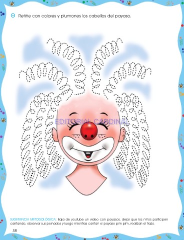 cantando, observar sus peinados y luego mientras cantan el payaso pim pim, realizan el trazo.