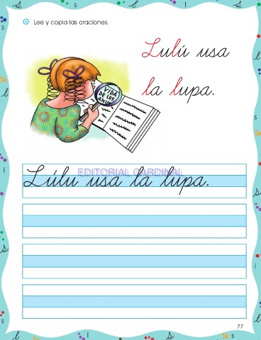 s l ⵙ Lee y copia las oraciones. s Lulú usa la lupa. s Lulu usa la lupa. l EDITORIAL CARDINAL EDITORIAL CARDINAL l s 77 l s