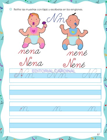 s l s ⵙ Retiñe las muestras con lápiz y escríbelas en los renglones. nena nené s N N ena ené l EDITORIAL CARDINAL EDITORIAL CARDINAL l s 87 l s