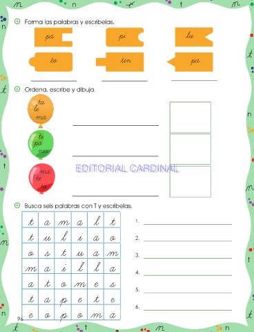 ⵙ Busca seis palabras con T y escribelas.