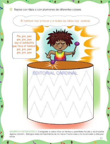 SUGERENCIA METODOLÓGICA: Consiguéle a varios niños un tambor y permítales tocarlo y acompañar