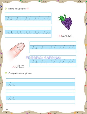 u u u ⵙ Retiñe las vocales u. u u EDITORIAL CARDINAL EDITORIAL CARDINAL ⵙ Completa los renglones. u u 16 u u