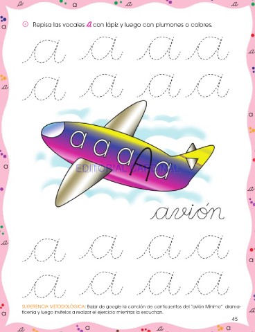 a ⵙ Repisa las vocales a con lápiz y luego con plumones o colores.