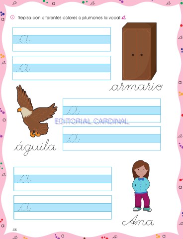 a a ⵙ Repisa con diferentes colores o plumones la vocal a. a a EDITORIAL CARDINAL EDITORIAL CARDINAL a a 46 a a