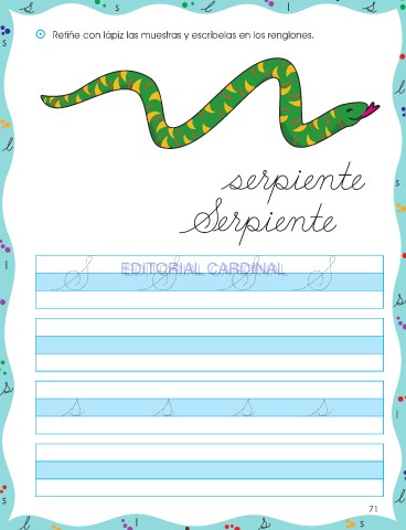 s l ⵙ Retiñe con lápiz las muestras y escríbelas en los renglones. s s l EDITORIAL CARDINAL EDITORIAL CARDINAL l s 71 l s