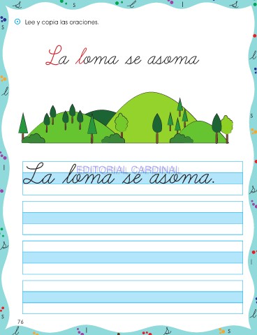s l ⵙ Lee y copia las oraciones. s La loma se asoma s La loma se asoma. l EDITORIAL CARDINAL EDITORIAL CARDINAL l s 76 l s