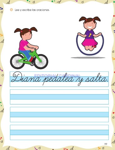 d d ⵙ Lee y escribe las oraciones. d d iana pedalea y salta. d D EDITORIAL CARDINAL EDITORIAL CARDINAL d d 99 d d